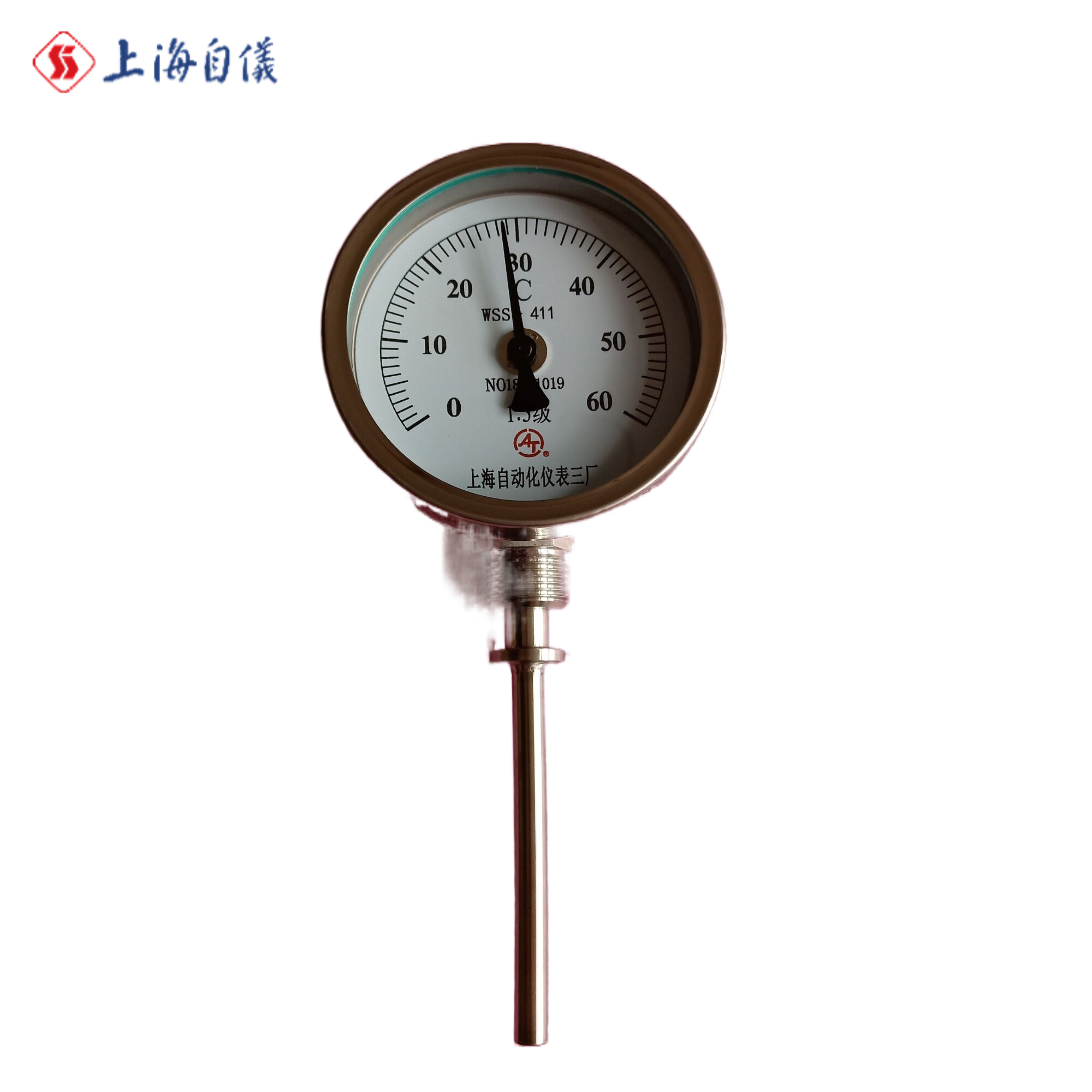 双金属温度计是一种测量中低温度的现场检测仪表。可以直接测量各种生产过程中的-80℃-+500℃范围内液体蒸汽和气体介质温度. 与玻璃水银温度计相比具有无害、易读数、牢固耐用等优点。
